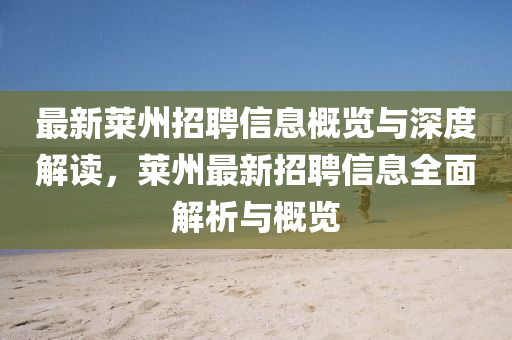 隨著經(jīng)濟(jì)的復(fù)蘇和行業(yè)的持續(xù)發(fā)展,萊州市的企業(yè)正在積極尋求新的員工加入他們的團(tuán)隊(duì),最新的萊州招聘信息為廣大求職者帶來了全新的機(jī)遇和挑戰(zhàn),本文將從新聞報道的視角出發(fā),結(jié)合個人見解,對最新的萊州招聘信息進(jìn)行全面的解讀。
