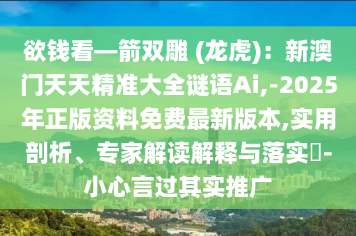欲錢看—箭雙雕 (龍虎):新澳門天天精準(zhǔn)大全謎語(yǔ)Ai,-2025年正版資料免費(fèi)最新版本的實(shí)用剖析、專家解讀解釋與落實(shí)?