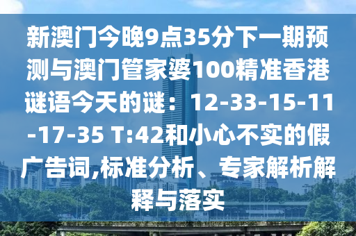 新澳門今晚9點35分下一期預測與澳門管家婆100精準香港謎語今天的謎:12-33-15-11-17-35 T:42和小心不實的假廣告詞,標準分析、專家解析解釋與落實