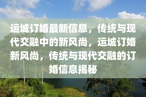 運(yùn)城,山西省的一個(gè)歷史文化名城,隨著時(shí)代的變遷,其傳統(tǒng)文化習(xí)俗也在不斷地更新變化,訂婚,作為婚姻嫁娶過程中的重要環(huán)節(jié),近年來在運(yùn)城地區(qū)也涌現(xiàn)出許多新的信息和趨勢,本文將從新聞報(bào)道的視角出發(fā),結(jié)合個(gè)人見解,對運(yùn)城訂婚的最新信息進(jìn)行深入剖析。