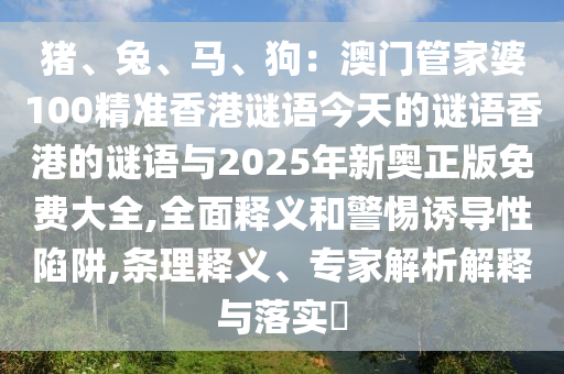 關(guān)于關(guān)鍵詞“豬、兔、馬、狗、澳門管家婆、香港謎語、2025年新奧正版免費大全”的全面釋義與警惕誘導(dǎo)性陷阱的解析