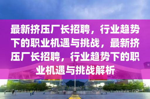 隨著科技的進步和工業(yè)領(lǐng)域的持續(xù)發(fā)展,擠壓廠長這一職業(yè)逐漸受到廣泛關(guān)注,隨著行業(yè)內(nèi)各大企業(yè)的擴張和轉(zhuǎn)型升級,擠壓廠長招聘成為熱點話題,本文將結(jié)合當前行業(yè)趨勢,以新聞報道的視角對擠壓廠長招聘進行深入剖析,并融入自己的觀點和見解。