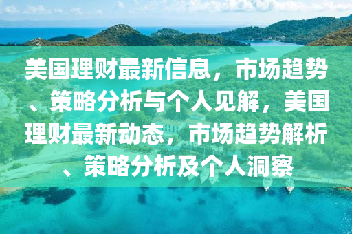 隨著全球經(jīng)濟一體化的深入發(fā)展,美國理財市場的新動態(tài)和信息對于全球投資者來說具有不可忽視的重要性,本文將結(jié)合新聞報道的視角,深入探討當前美國理財?shù)淖钚滦畔?,包括市場趨勢、策略分析,并融入個人的見解。