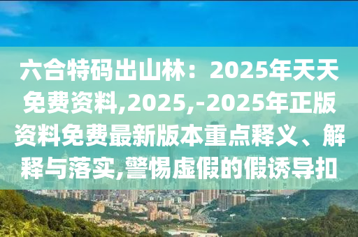關(guān)于防范“六合特碼出山林:2025年天天免費資料”等相關(guān)內(nèi)容的全面釋義、專家解讀與落實,以及警惕虛假宣傳的文章