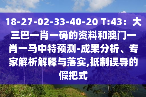 18-27-02-33-40-20 T:43:大三巴一肖一碼的資料和澳門(mén)一肖一馬中特預(yù)測(cè)-成果分析、專(zhuān)家解析解釋與落實(shí),抵制誤導(dǎo)的假把式