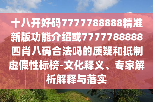 十八開(kāi)好碼7777788888精準(zhǔn)新版功能介紹或7777788888四肖八碼合法嗎的質(zhì)疑:文化釋義、專家解析解釋與落實(shí)