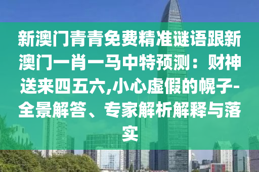 關(guān)于新澳門(mén)青青免費(fèi)精準(zhǔn)謎語(yǔ)、新澳門(mén)一肖一馬中特預(yù)測(cè)財(cái)神送來(lái)四五六等相關(guān)內(nèi)容,需要提醒公眾的是,此類(lèi)信息往往與虛假宣傳有關(guān),為了全面解答公眾的疑惑,我們將對(duì)關(guān)鍵詞進(jìn)行釋義、解釋與落實(shí),并強(qiáng)調(diào)警惕虛假宣傳的重要性。
