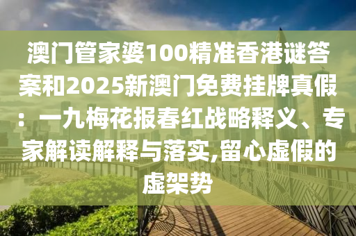澳門管家婆100精準香港謎答案和2025新澳門免費掛牌真假:一九梅花報春紅:戰(zhàn)略釋義、專家解讀解釋與落實