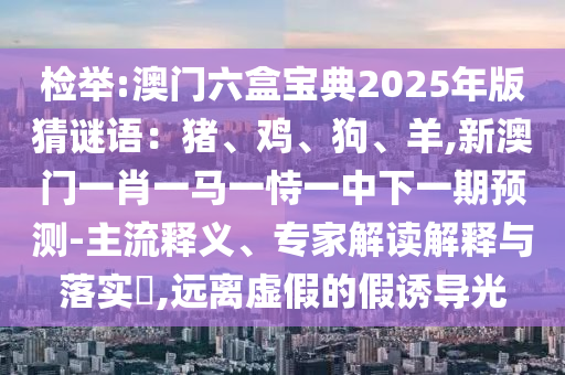 澳門六盒寶典2025年版猜謎語(yǔ):豬、雞、狗、羊,新澳門一肖一馬一恃一中下一期預(yù)測(cè):主流釋義、專家解讀解釋與落實(shí)?