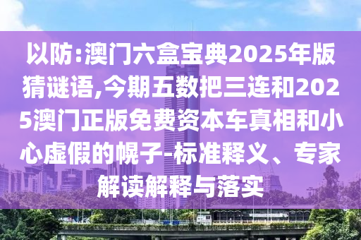 以防澳門六盒寶典2025年版猜謎語”、“今期五數(shù)把三連”以及“澳門正版免費(fèi)資本車真相”等關(guān)鍵詞的釋義、解讀與落實(shí),并提醒公眾警惕虛假宣傳