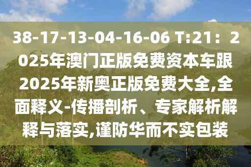 38-17-13-04-16-06 T:21:2025年澳門正版免費資本車跟2025年新奧正版免費大全,全面釋義:傳播剖析、專家解析解釋與落實