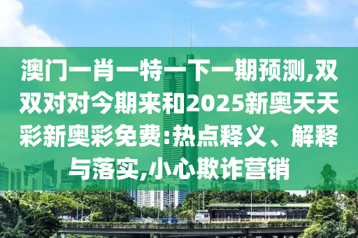 澳門一肖一特一下一期預(yù)測,雙雙對對今期來和2025新奧天天彩新奧彩免費:熱點釋義、解釋與落實,小心欺詐營銷