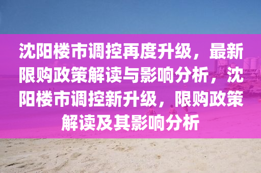 沈陽市政府宣布了新的樓市調(diào)控政策,其中最引人關(guān)注的便是限購政策的再度升級,這一政策調(diào)整引起了社會各界的廣泛關(guān)注,本文將從新聞報道的視角出發(fā),結(jié)合個人見解,對沈陽最新限購政策進(jìn)行解讀與影響分析。