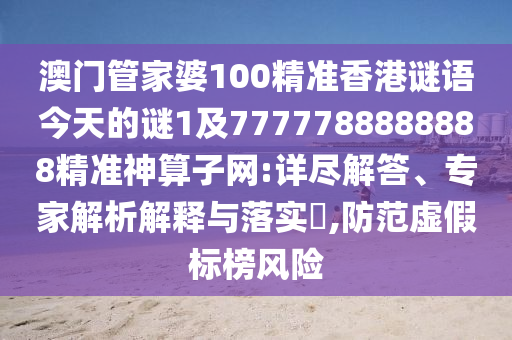 關(guān)于澳門管家婆100精準(zhǔn)香港謎語今天的謎1及777778888888精準(zhǔn)神算子網(wǎng)的相關(guān)解析與防范虛假宣傳風(fēng)險