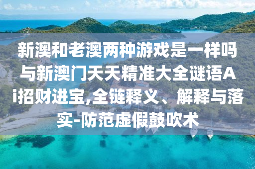 關(guān)于謹(jǐn)防新澳和老澳兩種游戲是否一樣,以及新澳門天天精準(zhǔn)大全謎語Ai招財進(jìn)寶與防范虛假鼓吹術(shù)的全鏈釋義、解釋與落實(shí)措施,以下是對這些關(guān)鍵詞的全面釋義、解釋與落實(shí)的詳細(xì)內(nèi)容。