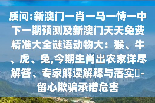 新澳門一肖一馬一恃一中下一期預(yù)測(cè)及新澳門天天免費(fèi)精準(zhǔn)大全謎語(yǔ)動(dòng)物大:猴、牛、虎、兔,今期生肖出農(nóng)家的詳盡解答、專家解讀解釋與落實(shí)?