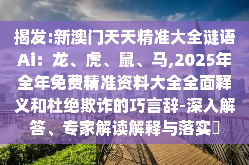 揭發(fā):新澳門天天精準大全謎語Ai:龍、虎、鼠、馬,2025年全年免費精準資料大全全面釋義和杜絕欺詐的巧言辭-深入解答、專家解讀解釋與落實?