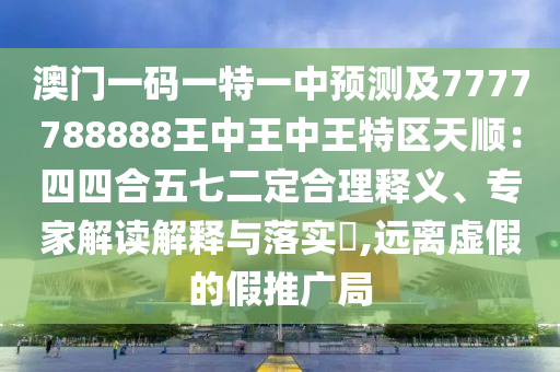 關(guān)于澳門(mén)一碼一特一中預(yù)測(cè)及7777788888王中王中王特區(qū)天順:四四合五七二定等相關(guān)內(nèi)容的全面釋義、專(zhuān)家解讀與落實(shí),以及警惕虛假宣傳