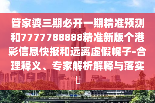 管家婆三期必開一期精準(zhǔn)預(yù)測和7777788888精準(zhǔn)新版?zhèn)€港彩信息快報和遠(yuǎn)離虛假幌子-合理釋義、專家解析解釋與落實?