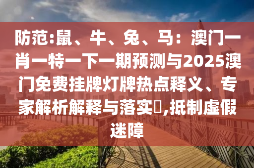 關(guān)于防范鼠、牛、兔、馬生肖預(yù)測(cè)與澳門(mén)免費(fèi)掛牌燈牌熱點(diǎn)的問(wèn)題,我們需要從全面釋義、專(zhuān)家解讀與落實(shí)以及警惕虛假宣傳三個(gè)方面進(jìn)行深入解析,以下是對(duì)此現(xiàn)象的詳細(xì)分析。