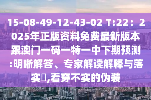 15-08-49-12-43-02 T:22:2025年正版資料免費(fèi)最新版本跟澳門一碼一特一中下期預(yù)測:明晰解答、專家解讀解釋與落實(shí)?,看穿不實(shí)的偽裝