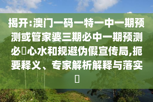 澳門(mén)一碼一特一中一期預(yù)測(cè)或管家婆三期必中一期預(yù)測(cè)必發(fā)心水的扼要釋義、專(zhuān)家解析解釋與落實(shí)?
