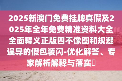 2025新澳門免費掛牌真假及2025年全年免費精準資料大全全面釋義正版四不像圖和規(guī)避誤導的假包裝閃-優(yōu)化解答、專家解析解釋與落實?