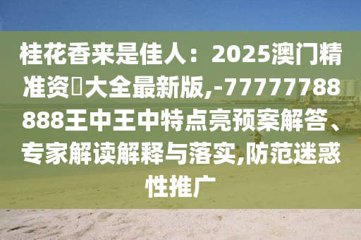 桂花香來是佳人:2025澳門精準(zhǔn)資枓大全最新版,-77777788888王中王中特點(diǎn)亮預(yù)案解答、專家解讀解釋與落實(shí),防范迷惑性推廣