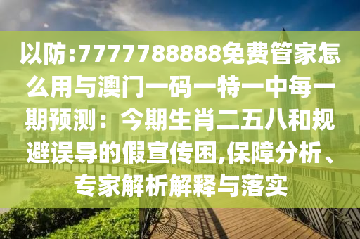 7777788888免費(fèi)管家怎么用與澳門一碼一特一中每一期預(yù)測(cè):今期生肖二五八的保障分析、專家解析解釋與落實(shí)