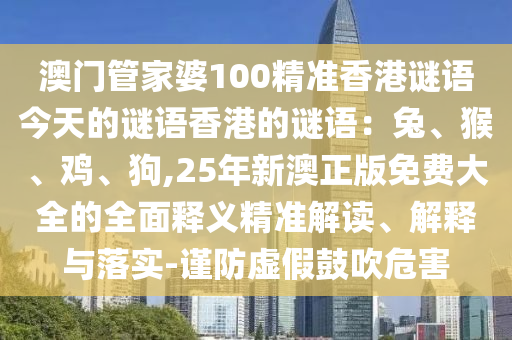 澳門管家婆100精準(zhǔn)香港謎語今天的謎語香港的謎語:兔、猴、雞、狗,25年新澳正版免費(fèi)大全的全面釋義精準(zhǔn)解讀、解釋與落實(shí)-謹(jǐn)防虛假鼓吹危害