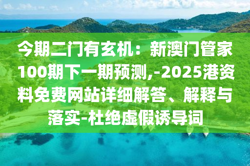 今期二門有玄機:新澳門管家100期下一期預測,-2025港資料免費網站的詳細解答、解釋與落實