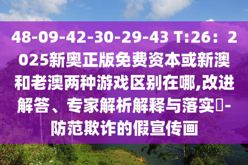 48-09-42-30-29-43 T:26:2025新奧正版免費資本或新澳和老澳兩種游戲區(qū)別在哪,改進解答、專家解析解釋與落實?-防范欺詐的假宣傳畫