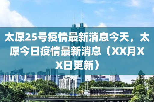 據(jù)太原市衛(wèi)健委通報,截至本月25號,太原市累計報告新增本土確診病例若干例,涉及多個區(qū)域,目前,疫情傳播鏈已基本清晰,相關(guān)部門正在全力追蹤密切接觸者和次密接者,太原市已經(jīng)啟動應(yīng)急響應(yīng)機(jī)制,采取了一系列措施,包括加強(qiáng)社區(qū)管控、開展大規(guī)模核酸檢測等,以遏制疫情擴(kuò)散。
