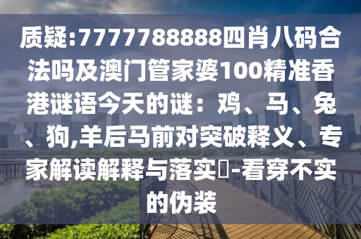 質(zhì)疑:7777788888四肖八碼合法嗎及澳門管家婆1山東水清源環(huán)??萍加邢薰?0精準香港謎語今天的謎:雞、馬、兔、狗,羊后馬前對突破釋義、專家解讀解釋與落實?-看穿不實的偽裝