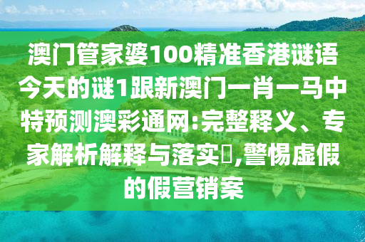 關(guān)于澳門管家婆、香港謎語、澳彩預測等相關(guān)關(guān)鍵詞的完整釋義、專家解析與警惕虛假宣傳的提醒
