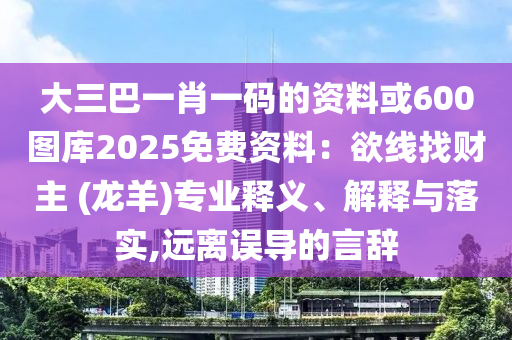 大三巴一肖一碼的資料或600圖庫2025免費資料:欲線找財主 (龍羊)的專業(yè)釋義、解釋與落實