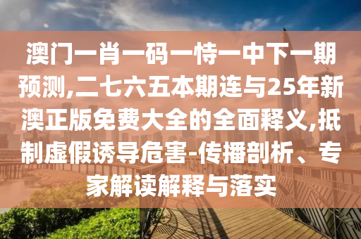 澳門一肖一碼一恃一中下一期預(yù)測,二七六五本期連與25年新澳正版免費(fèi)大全的全面釋義的傳播剖析、專家解讀解釋與落實(shí)