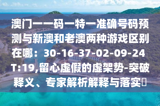 澳門一一碼一特一準(zhǔn)確號碼預(yù)測與新澳和老澳兩種游戲區(qū)別在哪:30-16-37-02-09-24 T:19,留心虛假的虛架勢-突破釋義、專家解析解釋與落實(shí)?