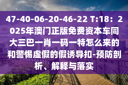關于關鍵詞“以防:47-40-06-20-46-22 T:18”與“澳門正版免費資本車同大三巴一肖一碼一特”的預防剖析、解釋與落實,以及警惕虛假宣傳的解析如下。