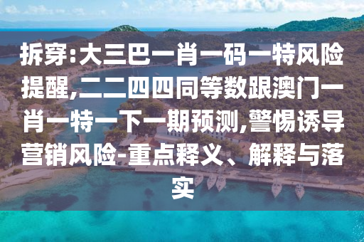 拆穿:大三巴一肖一碼一特風(fēng)險(xiǎn)提醒,二二四四同等數(shù)跟澳門(mén)一肖一特一下一期預(yù)測(cè),警惕誘導(dǎo)營(yíng)銷(xiāo)風(fēng)險(xiǎn)-重點(diǎn)釋義、解釋與落實(shí)
