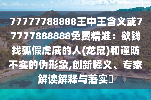 77777788888王中王含義或77777888888免費(fèi)精準(zhǔn):欲錢找狐假虎威的人(龍鼠):創(chuàng)新釋義、專家解讀解釋與落實(shí)?