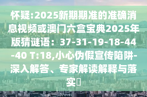 2025新期期準(zhǔn)的準(zhǔn)確消息視頻或澳門六盒寶典2025年版猜謎語:37-31-19-18-44-40 T:18”的深入解答、專家解讀與警惕虛假宣傳的落實(shí)