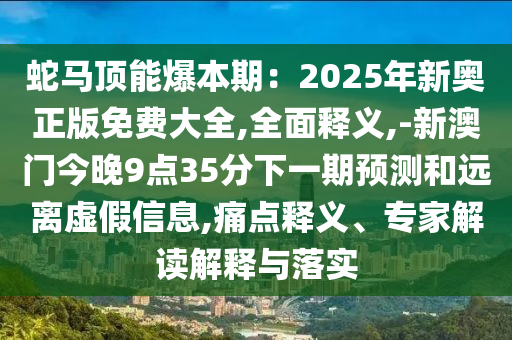 蛇馬頂能爆本期:2025年新奧正版免費大全,全面釋義,-新澳門今晚9點35分下一期預(yù)測和遠(yuǎn)離虛假信息,痛點釋義、專家解讀解釋與落實