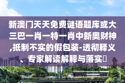新澳門天天免費謎語題庫或大三巴一肖一特一肖中新奧財神:透徹釋義、專家解讀解釋與落實?