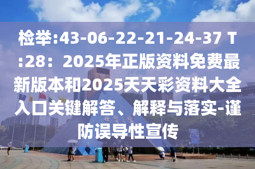 關(guān)于檢舉號(hào)碼“43-06-22-21-24-37 T:28”、2025年正版資料免費(fèi)最新版本以及2025天天彩資料大全入口的相關(guān)信息,我們將從全面釋義、專(zhuān)家解讀與落實(shí)、警惕虛假宣傳三個(gè)方面進(jìn)行解析,以確保公眾不被誤導(dǎo)性宣傳所迷惑。