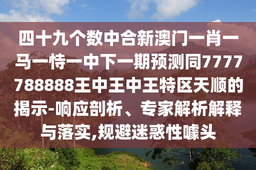 四十九個數(shù)中合新澳門一肖一馬一恃一中下一期預(yù)測同7777788888王中王中王特區(qū)天順的揭示-響應(yīng)剖析、專家解析解釋與落實,規(guī)避迷惑性噱頭