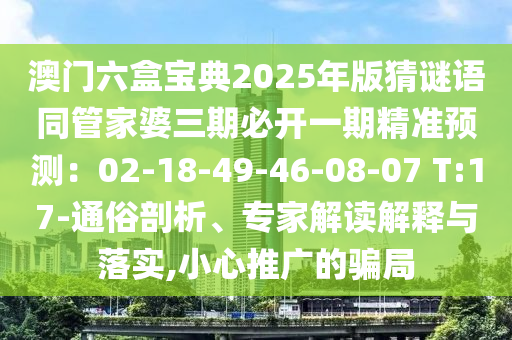 澳門六盒寶典2025年版猜謎語同管家婆三期必開一期精準(zhǔn)預(yù)測:02-18-49-46-08-07 T:17-通俗剖析、專家解讀解釋與落實(shí),小心推廣的騙局
