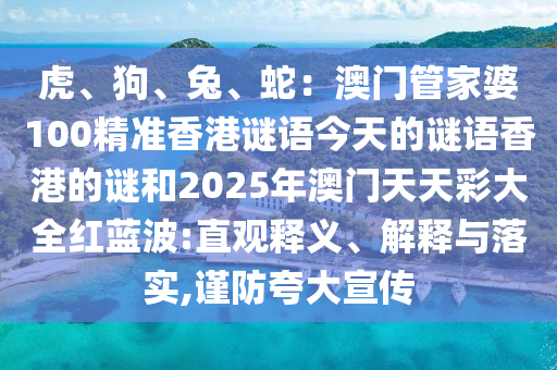 虎、狗、兔、蛇:澳門管家婆100精準香港謎語今天的謎語香港的謎和2025年澳門天天彩大全紅藍波:直觀釋義、解釋與落實,謹防夸大宣傳