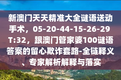 新澳門天天精準(zhǔn)大全謎語送動手術(shù),05-20-44-15-26-29 T:32,跟澳門管家婆100謎語答案的留心欺詐套路-全鏈釋義、專家解析解釋與落實