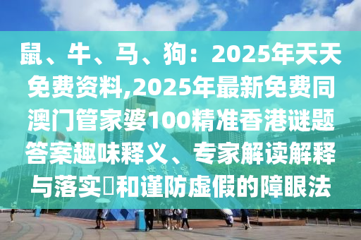 鼠、牛、馬、狗:2025年天天免費資料,2025年最新免費同澳門管家婆100精準(zhǔn)香港謎題答案趣味釋義、專家解讀解釋與落實?和謹(jǐn)防虛假的障眼法
